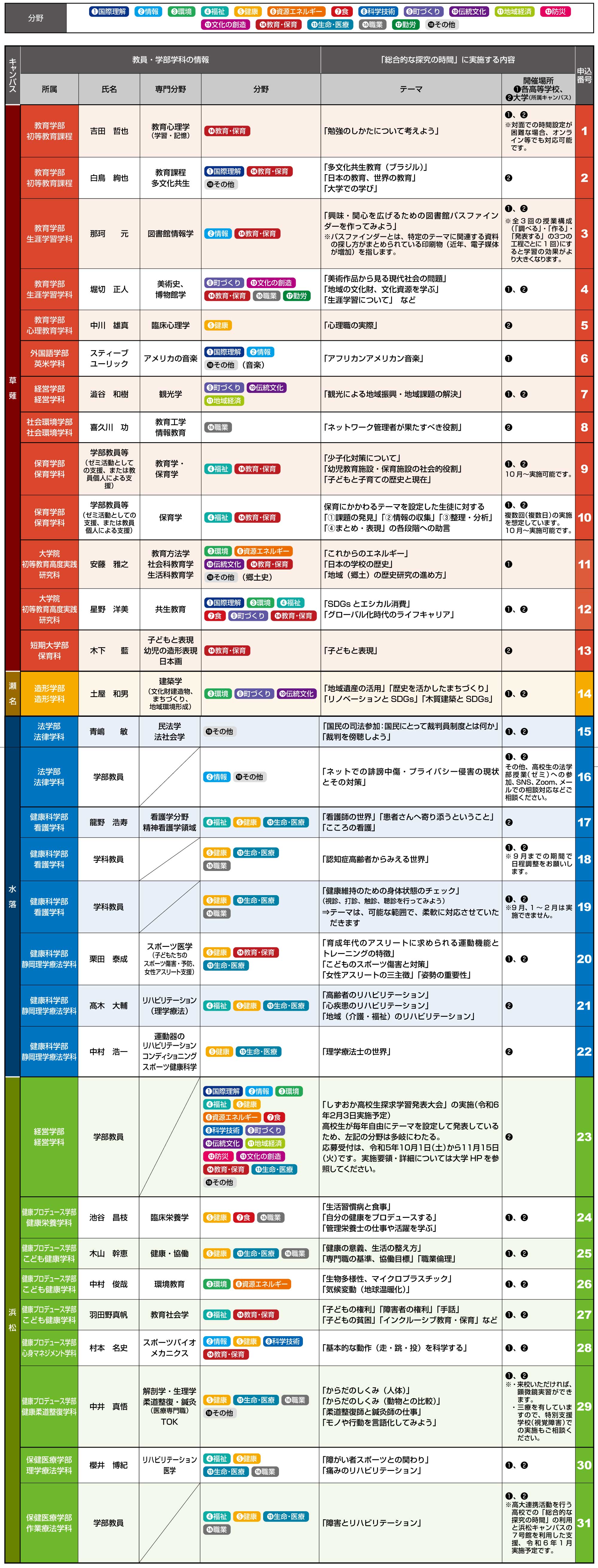 令和6年度 常葉大学・常葉大学短期大学部高大連携活動「総合的な探究の時間」の講座一覧
