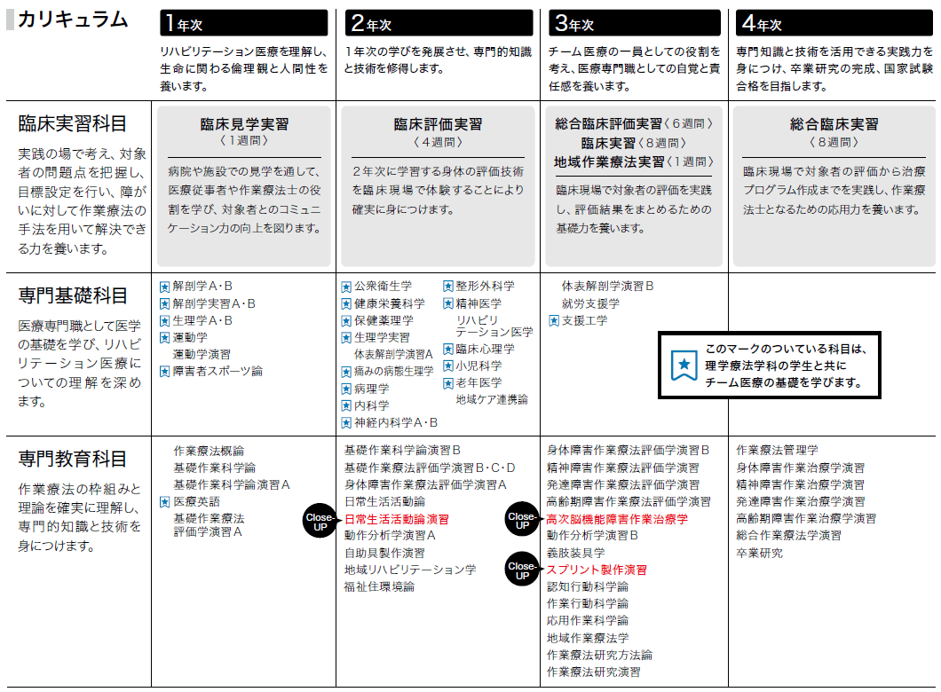 ホーム >  保健医療学部 >  作業療法学科 >  4年間の学び