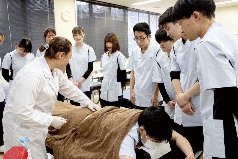 浜松キャンパス8号館内にある附属の鍼灸接骨院。一般の方やアスリートへの治療のほか、健康鍼灸学科の臨床実習施設、研究機関として開設。患者さんとコミュニケーションを取りながら、現場で必要な知識・技術・人間力を学びます。