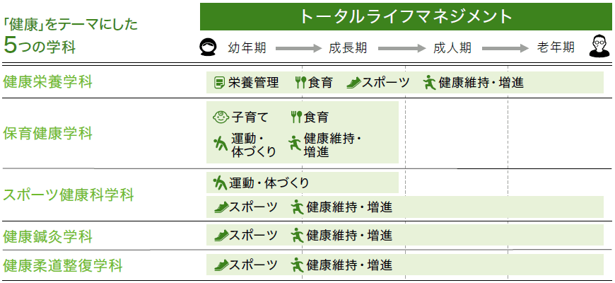 将来のキャリアにつながる「健康」をテーマにした5つの学科