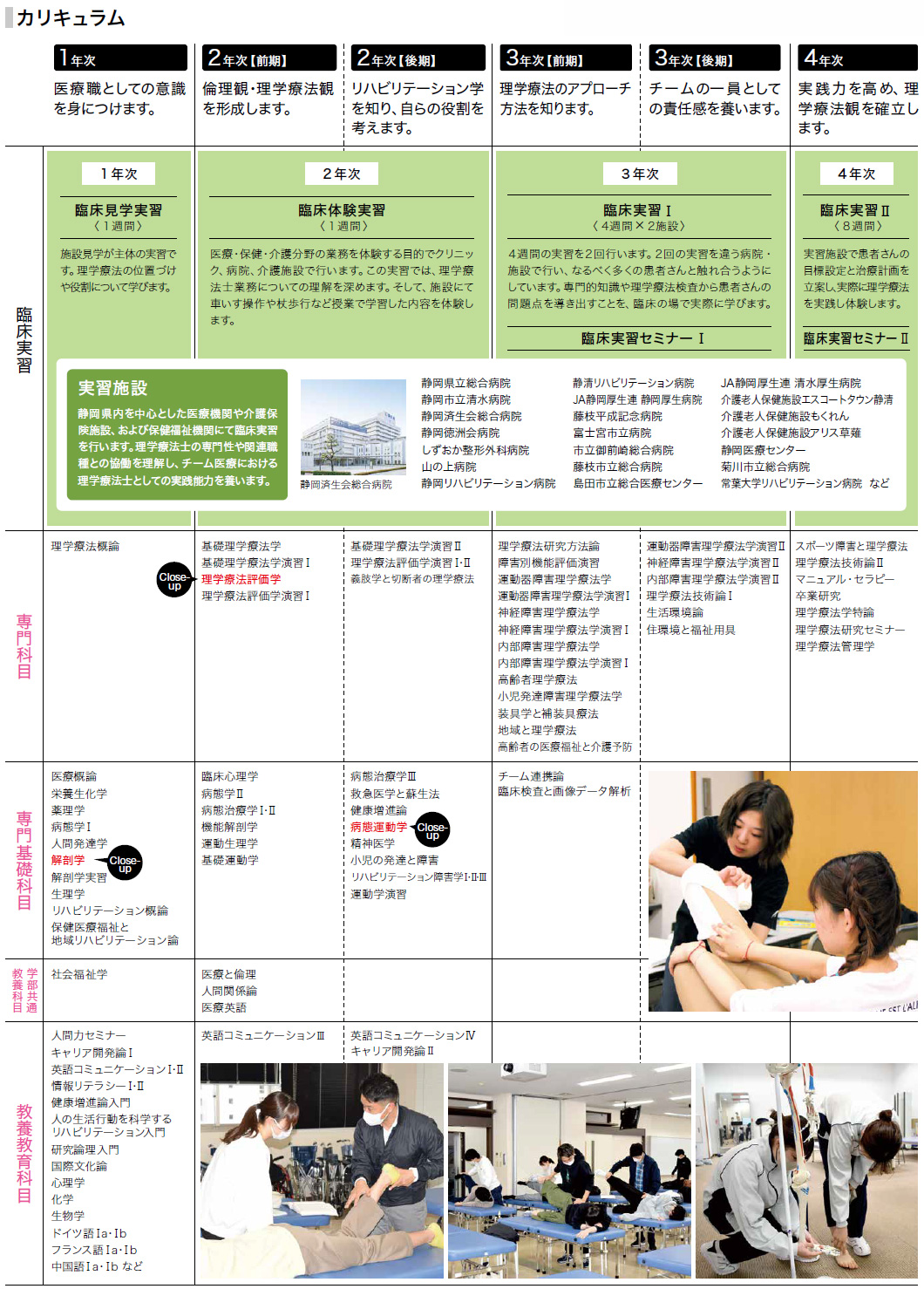 1カ月間の実習を通してリハビリ中の患者さんの様子を見学し、実際に筋肉を触診しながら理学療法士さんに質問したり、指導を受けながら評価をしました。患者さんの可動域の確認時に痛みが出たのを知り、愛護的な関節の他動運動の重要性に気づくことができました。今までさまざまな疾患について授業で学びましたが、同じ疾患でも患者さん個々に差があることがわかり、実習前は多少自信があった実技も臨床現場ではまだまだ通用しないと痛感しました。今回の反省をバネに、次回の実習では「この患者さんのことは私が一番知っている」と胸を張れるよう知識・技能を深めたいと思います。
