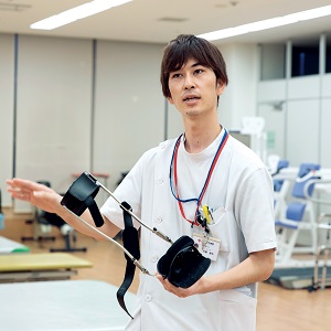 今私が意識していることは、患者様の退院後の生活を第一に考え、リハビリテーションの中で動作指導や生活指導を実施していくことです。少しでも生活リスクを減らし、自立して日常生活が、行えるような指導を心掛けています。また、患者様の中には発症のショックなどによって治療に対する意欲が低下してしまう方もいらっしゃいます。そういった患者様の気持ちに寄り添い、どのように介入したら良いか、治療を進めたら良いかも意識し、リハビリを行っています。