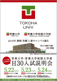 常葉大学・常葉大学短期大学部の平成30年度入試説明会を下記の通り行いますのでご案内いたします。