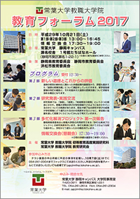 10月21日(土曜日)に常葉大学静岡キャンパス瀬名校舎にて、常葉大学教職大学院主催「教育フォーラム2017」が開催されます。