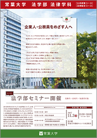常葉大学法学部の特長や詳細を知っていただくための「法学部セミナー」を11月3日(金曜日・祝)に静岡キャンパス水落校舎で開催します。