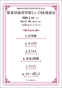ホーム >  Information >  第11回保育学部ミュージカル発表会のお知らせ(7月14日 開催)
