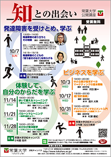 「発達障害を受け止め、学ぶ」、「ビジネスを学ぶ」、「体験して自分のからだを学ぶ」は定員に達したため、申込みを締め切らせていただきます。沢山のお申し込みをいただき、ありがとうございました。