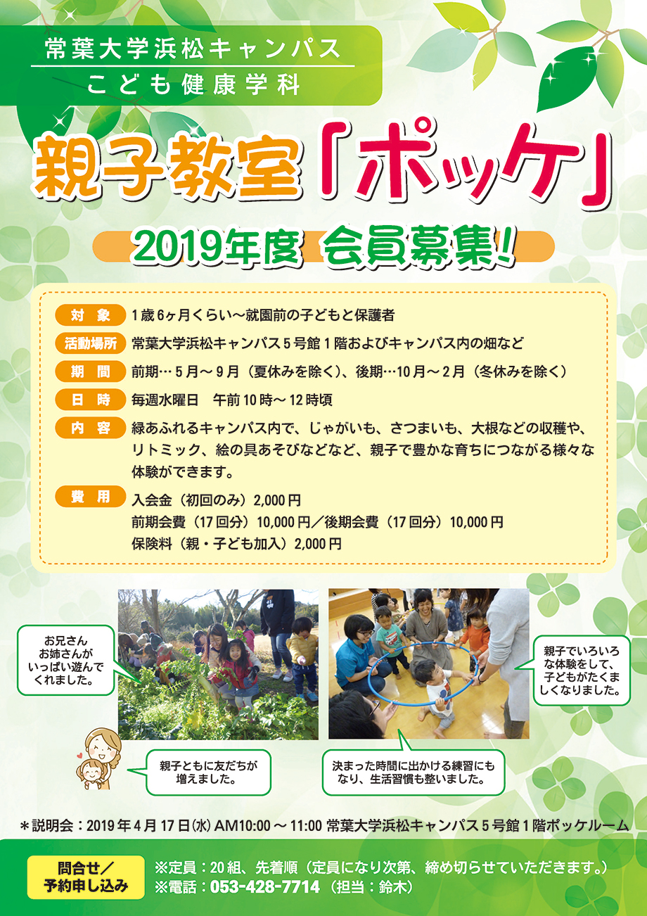 親子教室「ポッケ」2019年度会員募集チラシのダウンロード