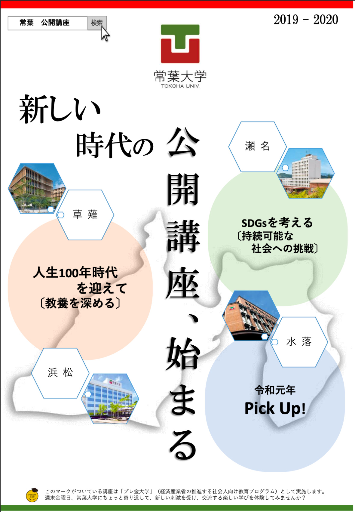 特に本年度の公開講座では、新時代の始まりに合わせて、地域のニーズに応えた18講座を用意いたしました。