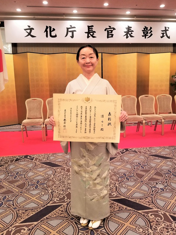 2023(令和5)年12月12日(火曜日)、清 ルミ(Rumi Sei)名誉教授が令和5年度文化庁長官表彰被表彰者に選ばれました。表彰式は、12月19日(火曜日)に京都にて行なわれました。