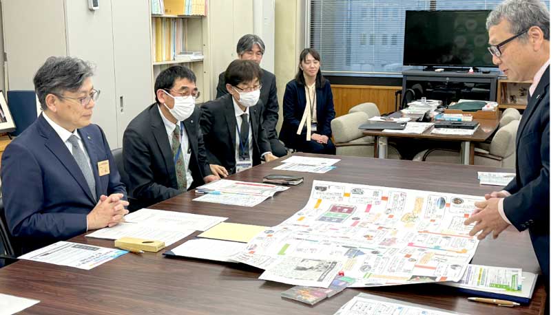 江藤学長から本学学生で結成する「静岡活性隊」が作成した「ゼロから始める静岡人生設計」を贈呈