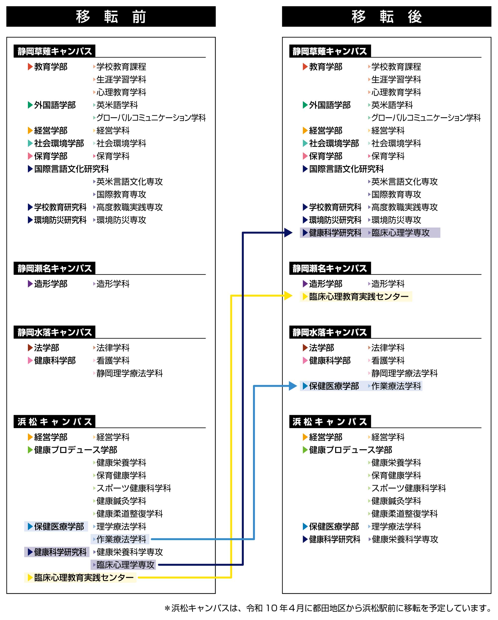 2 健康科学研究科臨床心理学専攻を浜松キャンパスから静岡草薙キャンパスに移転する。