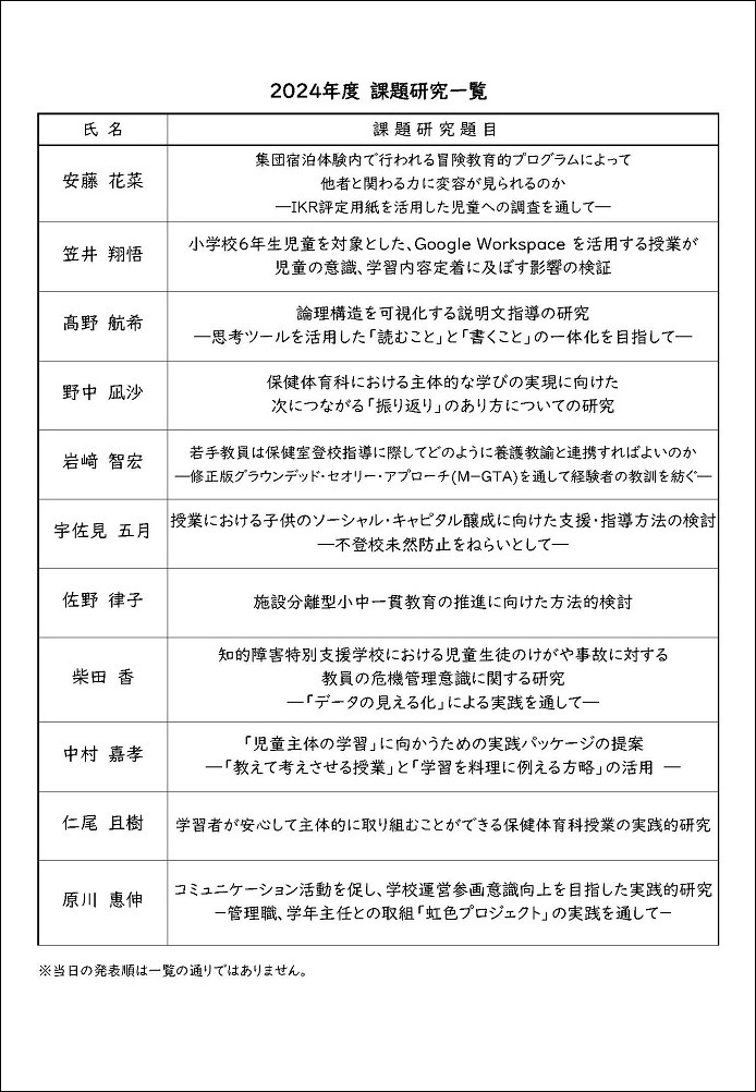 ホーム >  Information >  常葉大学教職大学院『令和6年度課題研究成果報告会』開催のお知らせ(2月20日開催)