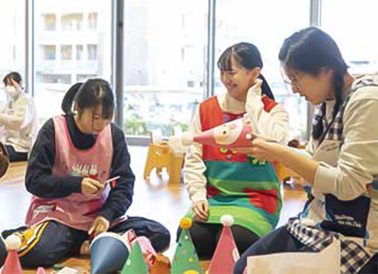 キャンパス内の子育て支援室で、学生が主体的に運営する“地域の子育て家庭の集いの場”を毎月開催しています。