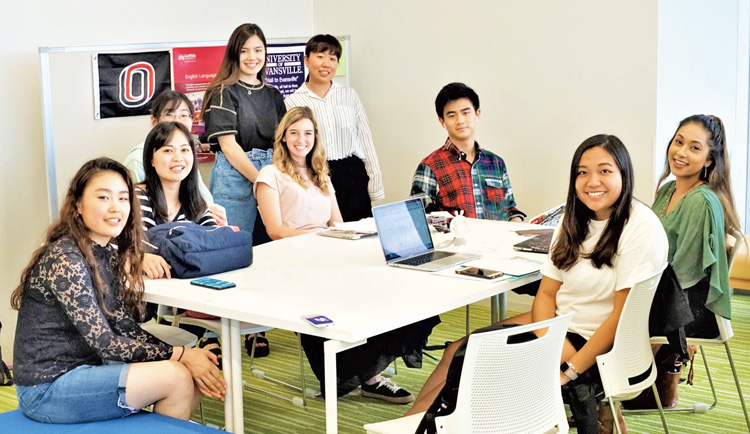 専任スタッフとTA(ティーチングアシスタント=留学経験のある学生など)が、一人ひとりのレベルにあわせた外国語学習の支援、海外留学のサポートなどを行っています。