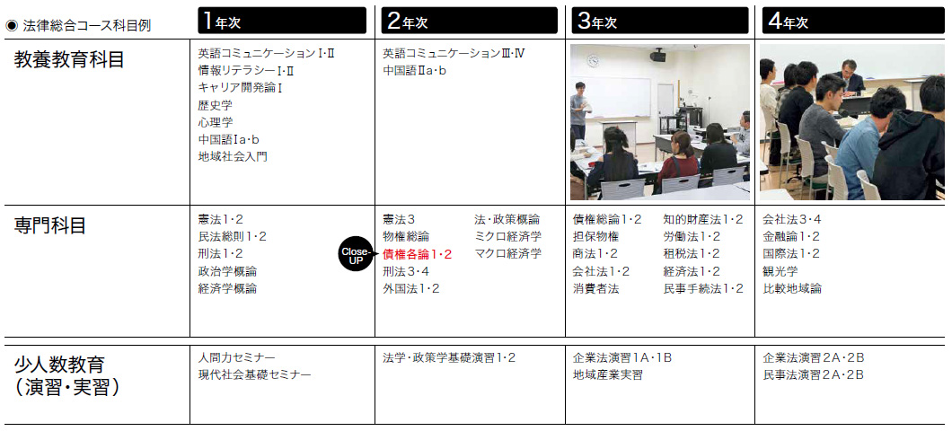 | 学びのキーワード | ● 法的思考力 ● 地域社会 ● コンプライアンス ● 実務能力 ● 課題解決能力 ● 司法 |