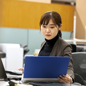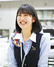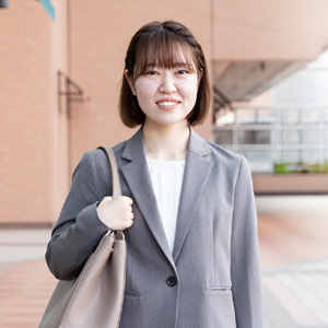 目標を民間企業へと変えた時、キャリア支援課の方々の励ましやアドバイスのおかげで、自信をもって就職活動に臨むことができました。現在は、窓口業務や現金の勘定合わせなどを行っており、毎日大きな額のお金を扱う一方、1円の重さも身に沁みて感じています。今後はさらに商品知識を身につけ、お客様に「明石さんなら安心して任せられる」と言っていただけるような信頼関係を築いていきたいと思います。