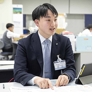 現在は新規開拓に従事しています。飛び込み営業は難しいと感じることもありますが、自分がお伝えした情報がお客様のお役に立てたときや、自信をもって自社商品をご提案できたときには、本当にやりがいを感じます。とはいえ最初は、お客様への「ひとこと目」が出ず苦労しました。支えになったのは研修のため全国から集った同期たち。お互い切磋琢磨しました。弊社はほぼ転勤がありません。10 年、20 年先もここで、お客様と長く深いお付き合いをしながら、自分らしくありたいと願っています。