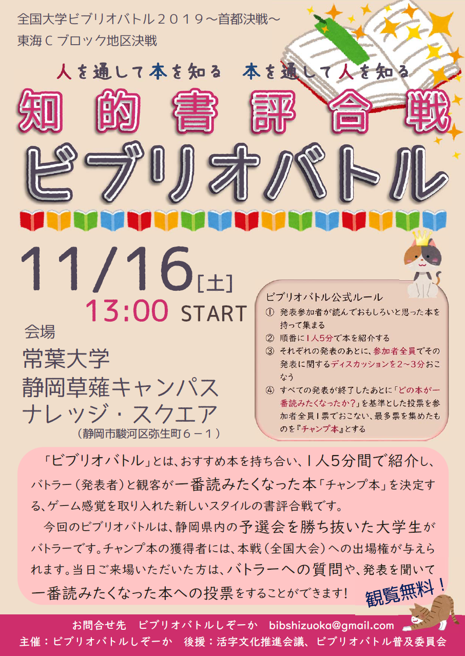 【草薙】「全国大学ビブリオバトル2019~首都決戦~」の地区決戦を開催しました