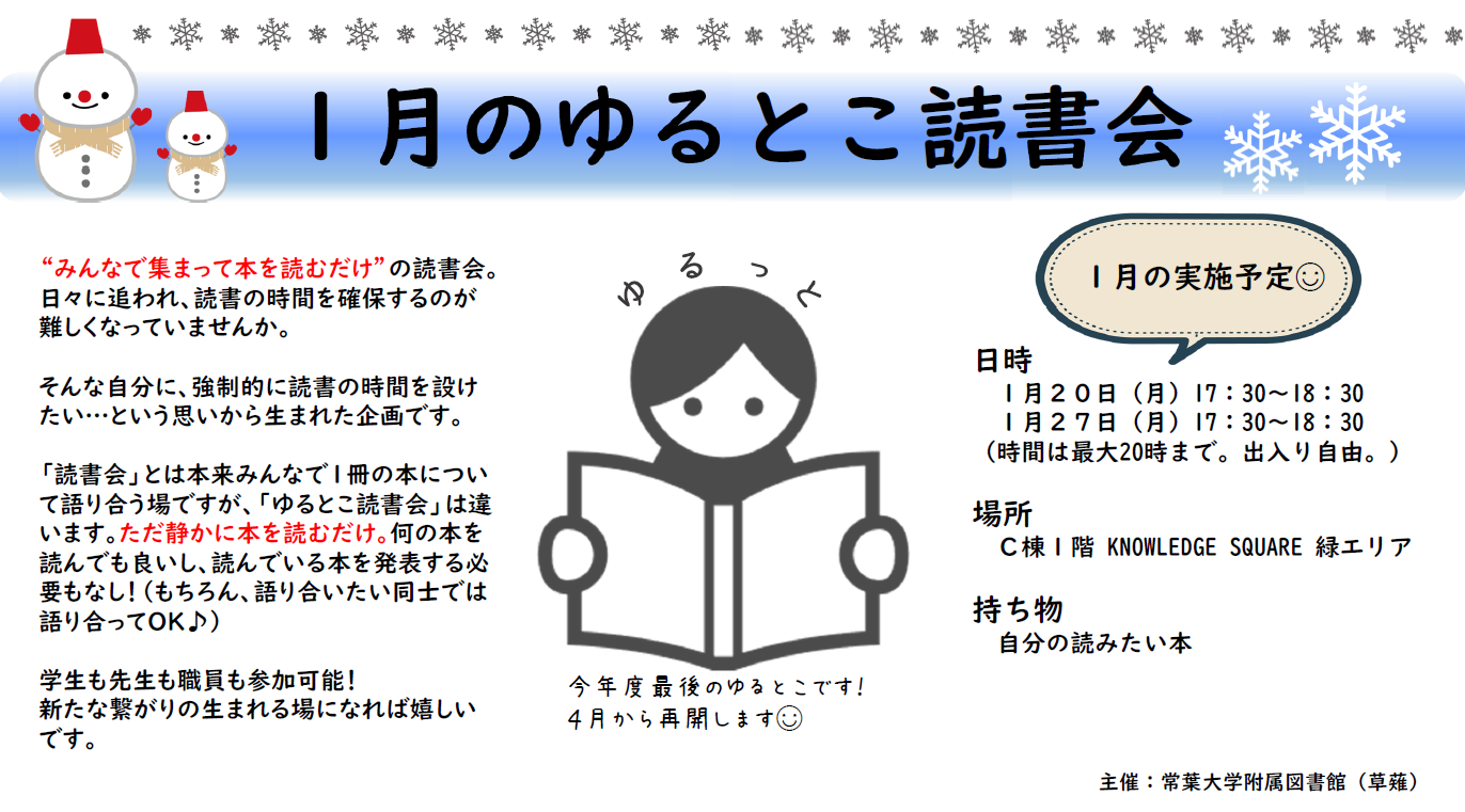 【草薙】ゆるとこ読書会のお知らせ(1月)