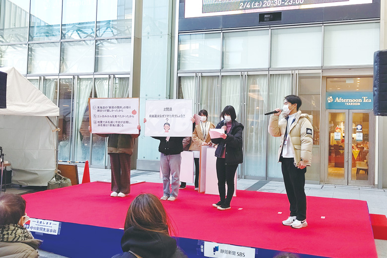 村瀬ゼミでは観光経営論を専攻しており、NHK大河ドラマ「どうする家康」の放映にちなんで、まちなかの魅力を集めた観光マップを製作しました。学生がいち押しの店舗を遠州弁によるキーフレーズで紹介し、QRコードからウェブサイトやSNSを通じて最新情報にアクセスできるようにしています。