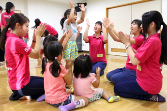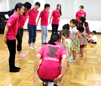 地域の幼児ら14名が参加し、「えんじょい・みゅーじっく」をテーマにピアノのメロディーに合わせ、踊ったり動物のまねをしたりして音楽を体で表現する楽しさを味わいました。また、年齢ごとにリズムを変えるなどの工夫や、体のたたく所によって音が違うことなども伝え、親子共に楽しんでいる様子でした。リトミック(リズム表現による音楽教育)を学ぶ学生にとって学びを活かせる良い実践の場となりました。この講座は全3回を予定しており、10月13日(木曜日)はペットボトルを使用して楽器を作りました。