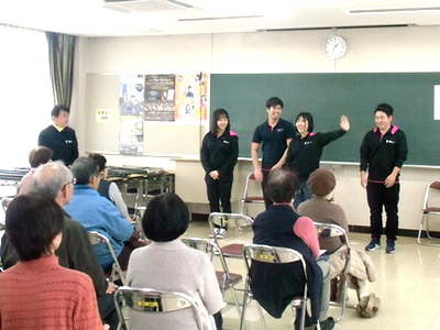 2月14日(木曜日)、浜松市都田協働センターにて心身マネジメント学科 井口ゼミの学生が地域の高齢者を対象とした「生きがいづくり教室」を開催しました。これは地域のみなさんがいつまでも健康で元気に暮らせる体づくりに取り組んでもらうきっかけとなるよう企画されました。