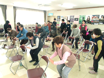 椅子を使ったスクワットや片足立ちなどを行った後のストレッチでは肩甲骨周辺をほぐすストレッチが好評で「スッキリした。」「暖かくなった。」とみなさんが効果を実感していました。