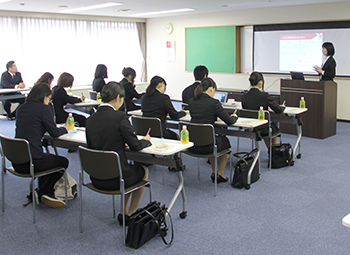 冒頭、職員の方からしずおか信用金庫の概要を説明していただき、業務内容や各種銀行の特徴など学生の予備知識にプラスαの説明を行っていただきました。