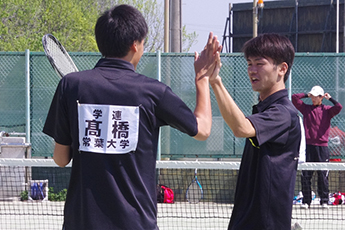 初日の2試合はともに2-3で惜敗して苦しい展開となりましたが、2日目は2連勝しました。その結果、名城大学、三重大学と勝率で並び、得失差で2位となり、2部との入れ替え戦に進出。5月4日(水曜日)に行われた入れ替え戦では2部4位の中部大学と対戦し、最後まで接戦となりましたが、見事勝利し、2部昇格を果たしました。