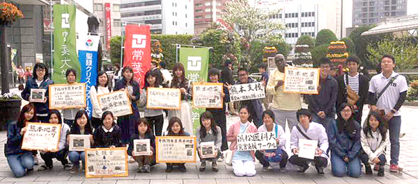 当日は、段ボールを加工し手作りした被害状況を伝えるパネルと募金箱を手に「熊本の復興に向けて皆さんの力が必要」と被災地支援を呼びかけました。参加した学生は「善意を熊本に届けるだけでなく、浜松の方が南海トラフ地震への備えを考えるきっかけになれば」と話し、人ごとではないことを改めて痛感しました。また活動を通し、大学同士の連携、交流できる良い機会にもなりました。