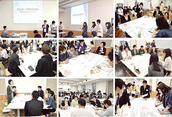 商品開発には、静岡、浜松、富士の3キャンパスを横断した学生プロジェクトチーム(「常葉大学 キャンパス横断プロジェクトチーム」)の約70人が参加し、4月から調査に取り組んできました。学生はグループに分かれ、アンケートや店舗調査から分析したターゲット層を説明し、県内各地の郷土料理も紹介。スシロー側から商品開発の責任者や県内10店舗の店長がグループに交ざり、店舗にある調理器具や料理提供の流れなどを説明して、実現可能な商品を模索しました。