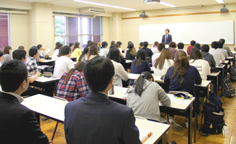 左伴社長のこのようなお話に、50名以上の2年生が熱心に耳を傾け、ノートを取っていました。左伴社長は、複数の学生からの質問にも真摯にお答えくださるなど、授業の終了時間を越えてまで、学生たちの心に響くお話に熱弁をふるってくださいました。