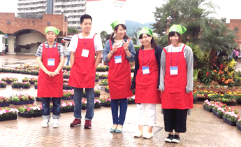 本学法学部の学生たちは、見物客の会場への誘導・アトラクションのサポートをして、イベント運営の重要な裏方としてのお手伝いをしました。終了後、学生たちは、今回のフラワーフェスタに参加して感じたこと、ならびに今後の開催における改善点等をまとめ、実行委員会事務局にレポートを提出しました。