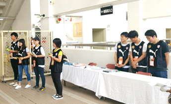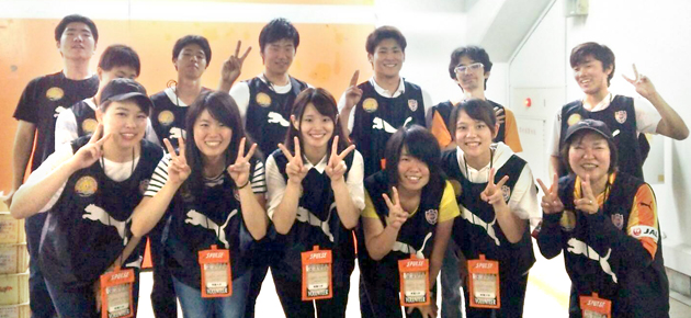 7月10日(日曜日)に、Jリーグ 清水エスパルスVSロアッソ熊本戦で、本学健康科学部の学生が車椅子障害者受付とメイン再入場口でスタジアムボランティアを行いました。健康科学部の看護学科と理学療法学科の学生12名と教員1名で参加しました。