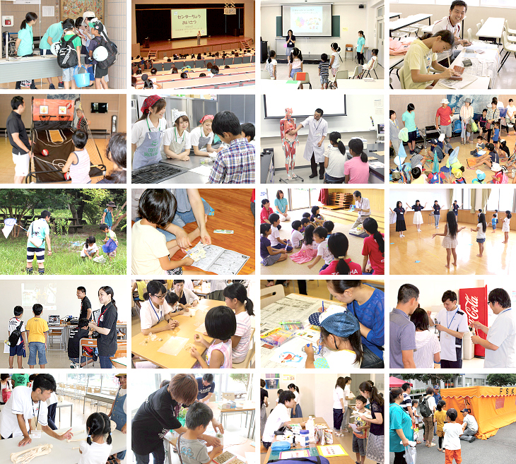 浜松キャンパスの各学科の学びを活かしたさまざまな講座を開講。教員の指導のもと、全学科から約200名の学生が講座を企画運営し、地域のこどもたちに、新たな学びの場を提供しました。