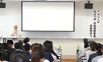 本学初の試みとして開催したこの報告会では、昨年度の「地域交流・連携推進事業」として採択された6事業の成果発表と、その他教員や学生による地域連携活動5事業を含む11事業のポスター発表が行われました。