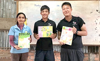 これは、木村ゼミの学生が識字率の低いカンボジアの子どもたちに少しでも文字と触れ合う機会をつくろうと毎年行っている取組みで、今年は新たに「みにくいあひるの子」を題材にした絵本を作成。絵本はこれを含め3種類300冊を特定非営利活動法人NGO活動教育研究センター「NERC」を通じて現地に届け、移動図書館では子どもたちに読み聞かせを行いました。