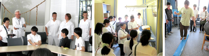 研修に参加した大石彬人さん(理学療法学科3年)は「今まで考えたこともなかったが、医療先進国のドイツでキャリアを積み日本で働くことで、日本の医療の発展に貢献できると感じた。また、医療スタッフみなさんが明るくニコニコされていて病院全体の雰囲気がよく、私も患者さんと接するときには患者さんが気持ちよくリハビリを受けられる環境作りを心がけていきたい」と語ってくれました。