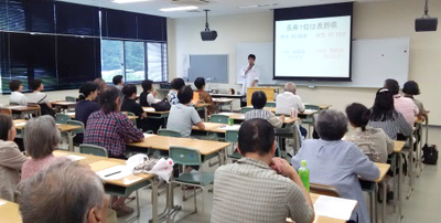 講演では、健康鍼灸学科の関真亮准教授が、東洋医学の観点から足腰の痛みに効くツボを紹介しながら健康寿命を延ばすための生活上の注意点についてアドバイスしました。