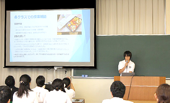 被災地で不足する栄養を補えるよう考案した健康クッキーを配布したり、被災者の癒しの場として静岡のお茶やお菓子を提供するTOKOHAMAカフェを運営した増田桂奈さん(健康栄養学科4年)は「震災当時の避難所では、偏った食生活や衛生面など苦労された話を伺い、状況に応じた問題解決ができる管理栄養士になれるよう努力していきたい」と話しました。