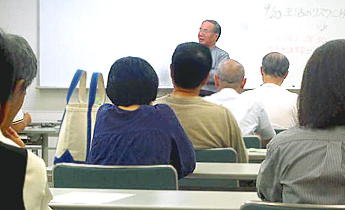 「高齢化社会における政治の役割」(安周永講師)、「離婚と法律」(梶村太市教授)、「生活のリスクと税」(柴由花准教授)というテーマで、日常生活で起こり得るさまざまな問題を、政治・政策・法律の観点から解説しました。安講師は、高齢化によって従来の社会システムが機能しなくなっている今日に、果たすべき政治の役割と課題について解説し、梶村教授は、少子高齢化社会と離婚、若年離婚や高齢者離婚の問題について家族法の観点からわかりやすく解説しました。柴准教授は、日本とノルウェーを比較しながら、少子高齢化社会における税制のあり方について解説を行いました。受講者の意識も高く、少子高齢化社会による社会の変化にどのように対応すべきかについて考えました。