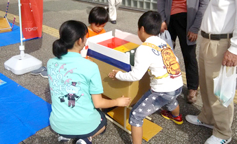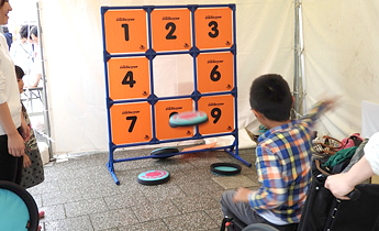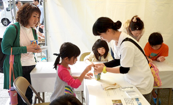 親子連れや高齢者が多く来場するこのイベントで、午前にはこボラ(こども健康学科)が手作りのパズルや輪投げなどのコーナーを、ボランティアサークル「ThunderBirds」はどろだんごづくりの体験コーナーを設置し、来場した子どもたちを楽しませました。午後からは、健康鍼灸学科の学生が耳ツボや手のツボを活用した健康相談を実施。また、保健医療学部の学生団体「障スポSC」は車いすに乗りながらスラロームやストラックアウトを体験してもらうコーナーを設置して、ゲーム感覚で障害のある方への理解を深めてもらうイベントを実施しました。