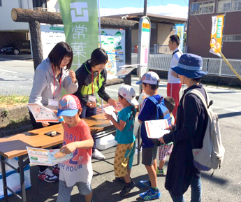 センター長である田中誠一教授のウォーキング教室と地域清掃を兼ねたイベントで、今年で5回目。今年は天竜浜名湖鉄道線に乗るファミリーBコースが新設され、散歩、自由散策、ノルディックの5つのコースで、大学周辺にある天竜浜名湖鉄道の駅や地元商店においたチェックポイントを回り、スタンプラリーをしながらウォーキングを楽しみました。