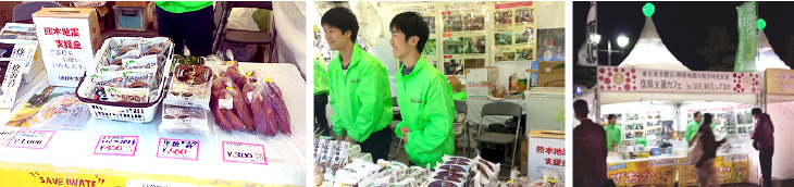 ボランティアに参加した法学部の学生たちは、被災地で作られた製品等の販売を手伝い、運営に関わった学生からは「被災地支援に貢献できて、有意義だった」、「今後もボランティアを続けていきたい」、「復興支援の商品開発を充実させる必要性もあるのではないか」、「支援に対してテーマや関連性を持つことが大切だと思った」などの意見が聞かれました。
