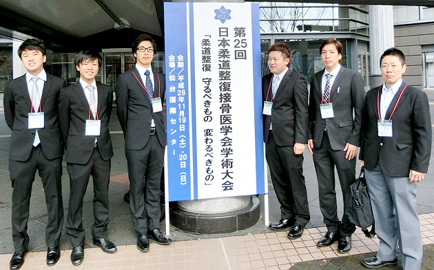 11月19(土曜日)と20日(日曜日)の両日、宮城県の仙台国際センターにおいて第25回日本柔道整復接骨医学会学術大会が開催され、健康プロデュース学部健康柔道整復学科の稲川郁子講師と上村英記講師が口頭発表を行ったほか、稲川ゼミ3年の新井龍也さん、大西建さん、小川大和さん、高橋渓太さん、若澤佳樹さんが共同研究の成果を発表しました。
