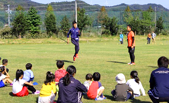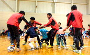11月19日(土曜日)には、サッカー部員がサッカーの基本テクニックを伝授。残念ながら雨のため体育館での開催となりましたが、初心者から経験者までが楽しめるよう、遊びを取り入れながら行いました。