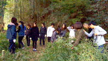 造形学部の20名近い学生たちが、事前に合宿するなどして、竹林の伐採、地域循環型の能舞台の設営、境内を照らす照明の制作などイベントの運営・実施に多くの役割を果たしました。