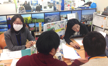 人口減少対策には、地域の情報をわかりやすく発信することが必要であることから、大石康晴氏(AALT株式会社代表)の指導の下、スマートフォンで現地の情報収集を行い、アプリの制作をしました。今後は、静岡市中心地等で子育てに関する地域情報を収集しアプリを制作するとともに、1月21日(土曜日)に少子化に対するシンポジウムを本学静岡キャンパス水落校舎にて開催する予定です。