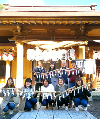 本学健康科学部看護学科の老年看護学ゼミナールの一環で、12月23日(金曜日)、静岡市の小梳神社にてしめ縄作りに参加しました。学生たちは、しめ縄作りを通し由来や意味について詳しく知り、日本古来の伝統的な行事に対して改めて理解を深めることができました。